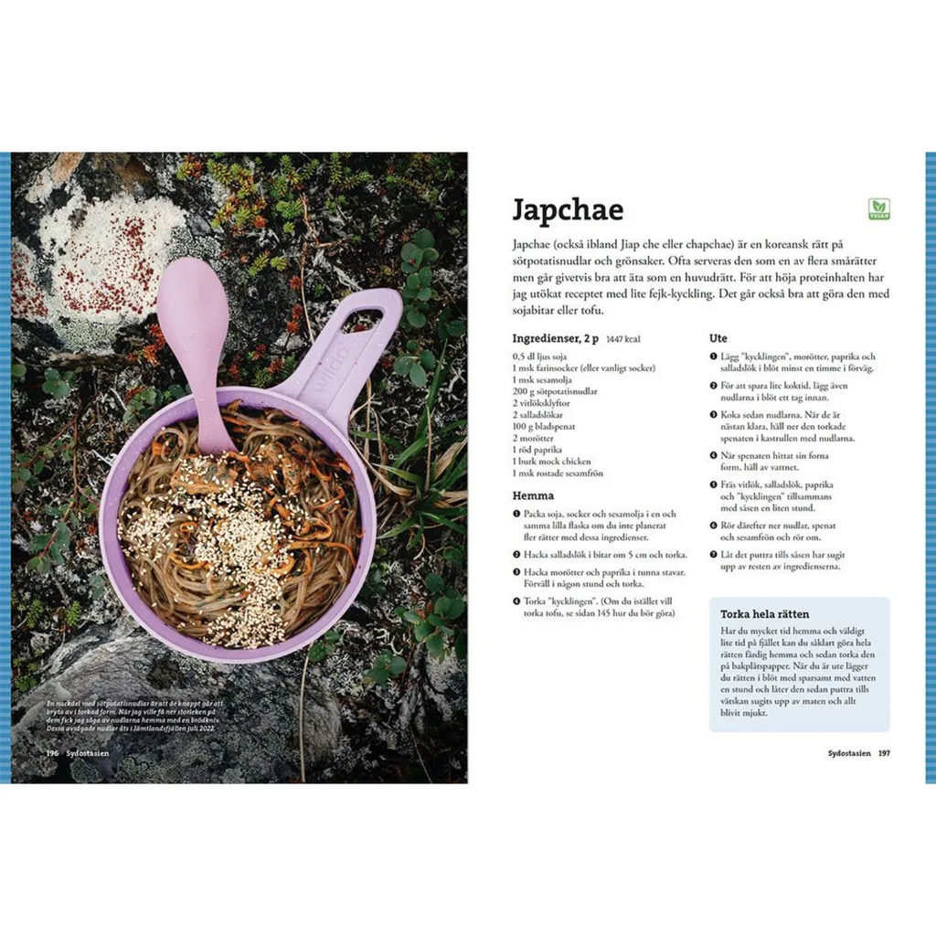 Recepten är upplagda så att du förbereder en del hemma, ibland genom att torka de ingredienser som behövs och sedan packar allt i lämpliga små flaskor och påsar. När du är ute på turen gör du de sista momenten och tillagar maten, lutar dig tillbaka och njuter. Prova att laga en Okonomiyaki efter en lång dags vandring – det är himmelskt!