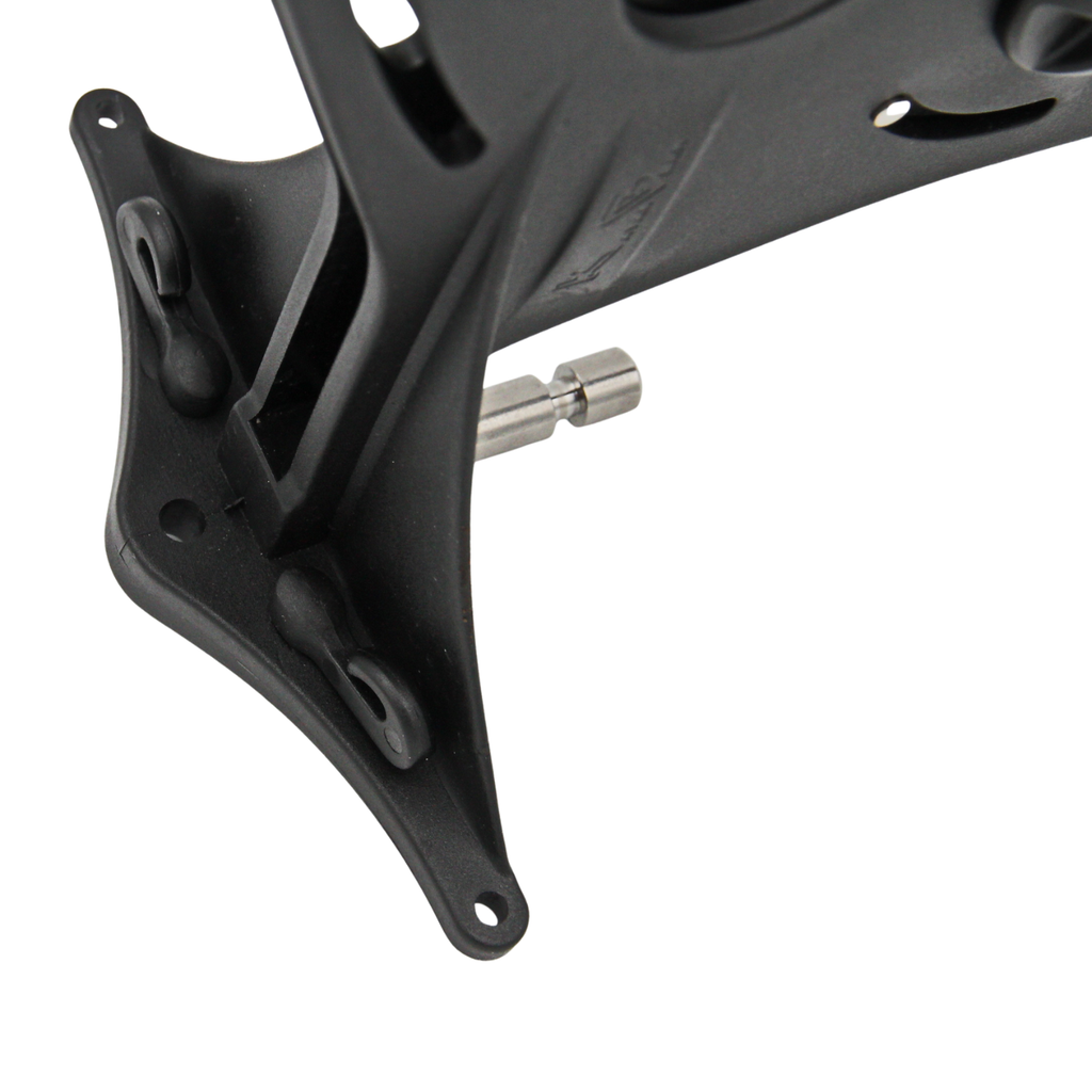 En fjäder ser till att roderbladet alltid hålls nerfällt under tiden du paddlar, men är utformat för att roderbladet ska fjädra upp om det stöter i botten. Kan fällas upp 180 grader från nedfällt läge. Det här rodret har i många år använts på World of Kayaks kajaker och rekommenderas därför för dig som behöver ett nytt roder till någon av deras modeller.