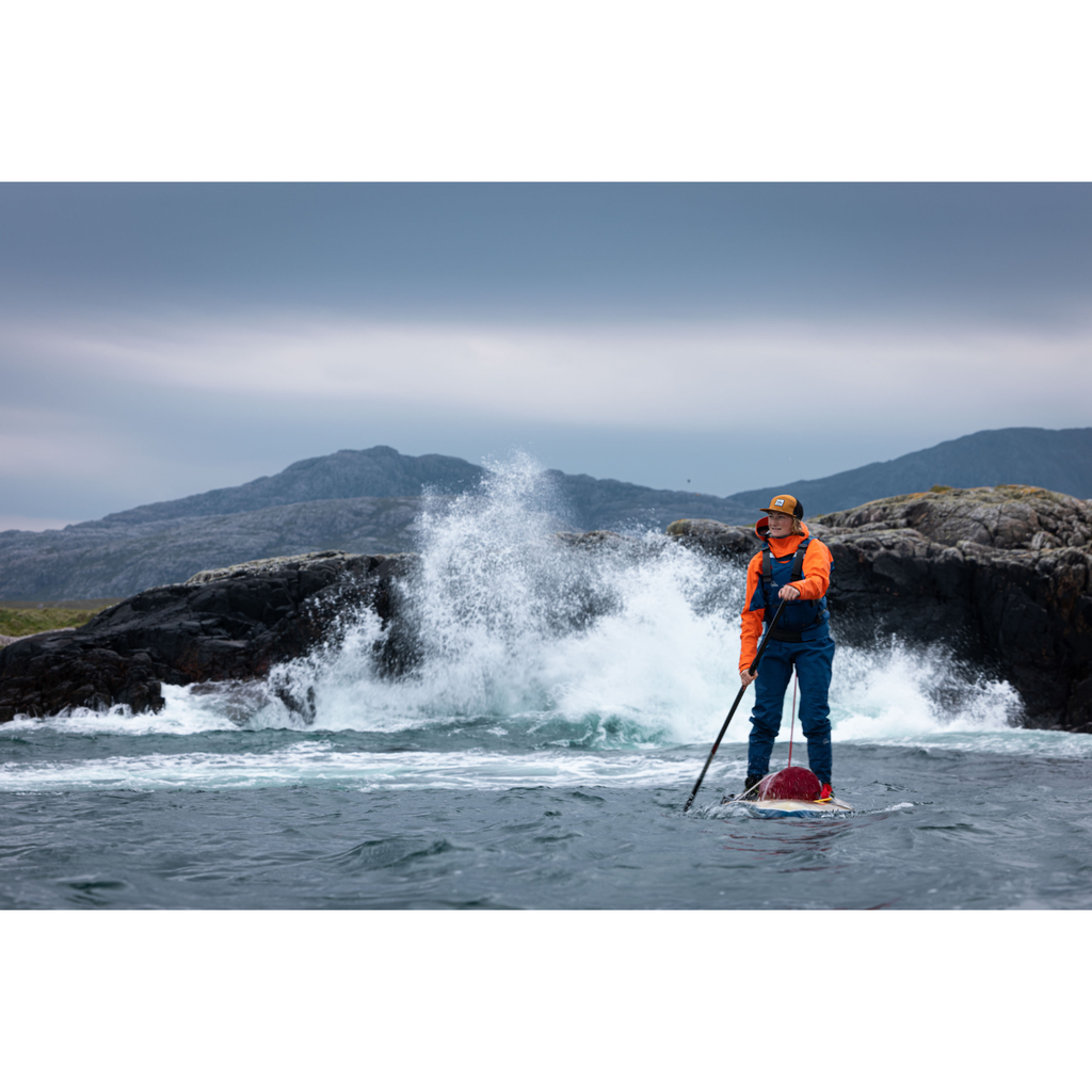 En diagonal YKK Aquaseal dragkedja som går från axel till höften gör det enkelt att ta på torrdräkten. Latex muddar i handleder och Glideskin neopren mudd i halsen gör att du håller dig torr och bekväm. Handledsmuddarna skyddas av yttermuddar i neopren.