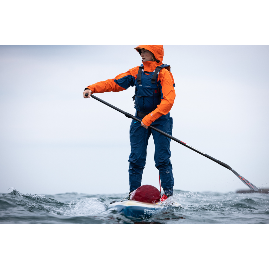 Det dubbla midjesystemet låser ihop med din paddeljacka och bildar en tvådelad dräkt för extra vattentäthet och isolering. De andningsbara, fyrskikts dubbeltejpsockorna håller dig bekväm även när du befinner dig i vattnet.