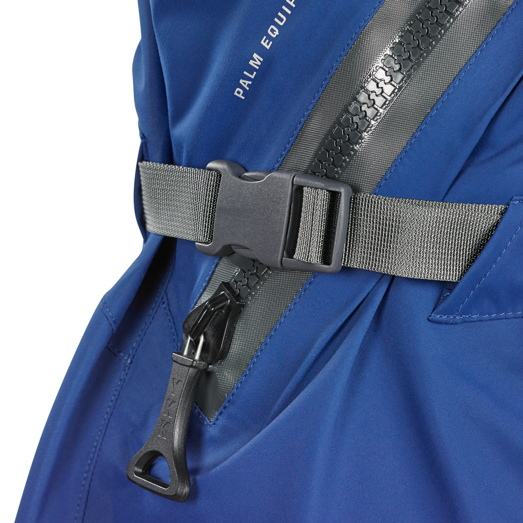 En diagonal YKK Aquaseal dragkedja som går från axel till höften gör det enkelt att ta på torrdräkten. Latex muddar i handleder och Glideskin neopren mudd i halsen gör att du håller dig torr och bekväm. Handledsmuddarna skyddas av yttermuddar i neopren.