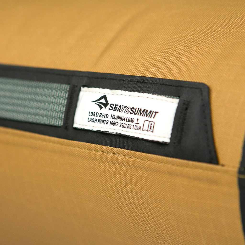 På sidorna av säcken finns Hypalon®-band för att du enkelt ska kunna surra säcken till exempel på kajakens däck eller i en öppen kanadensare. Säckens form är oval för att förhindra att den kan rulla.